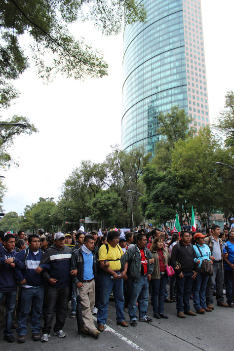 Gente de todas las edades y gremios, recorrieron la Avenida Reforma llevando pancartas y banderas con que hacían visible no sólo su apoyo total a la Coordinadora sino su rechazo y descontento con las reformas estructurales propuestas por el gobierno del presidente Peña Nieto, con la criminalización de la lucha social y la creciente ola represiva que se ha vivido en todo el país.