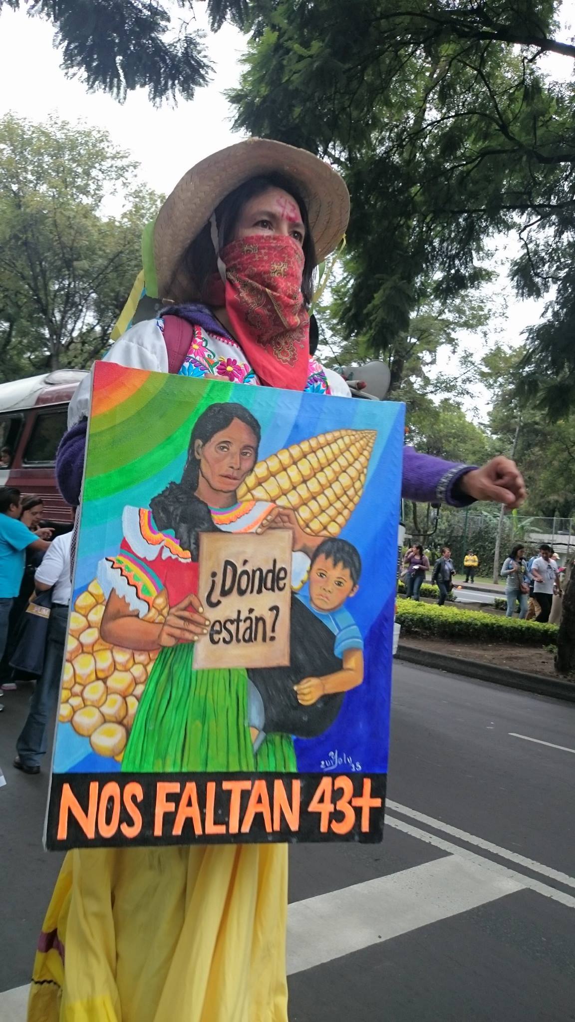 Imágenes de la marcha de ayer, 26 de septiembre de 2015, a un año del asesinato de 3 estudiantes normalistas de Ayotzinapa y la desaparición forzada de 43. Los familiares de los jóvenes ausentes encabezaron la marcha multitudinaria, en un día nublado, con lluvia y hasta con disturbios. La marcha comenzaría a las 12:00 pm. Eran las 16:00 pm y seguíamos caminando…