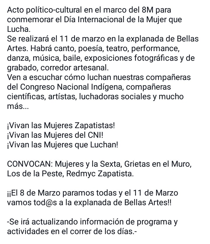 Acto que se llevará a cabo de 10:00 am a 8:00 pm.