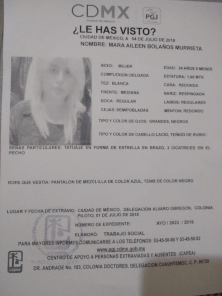 no aparece desde el domingo 1o de julio 2018. Favor de difundir. Cualquier informe, comunicarse al cel. 5534263530