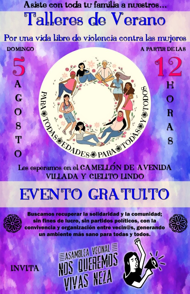 #INVITACIÓN | 🌺¡Ven con tu familia a los tallercitos de verano, por una vida libre de violencia contra las mujeres!🌺