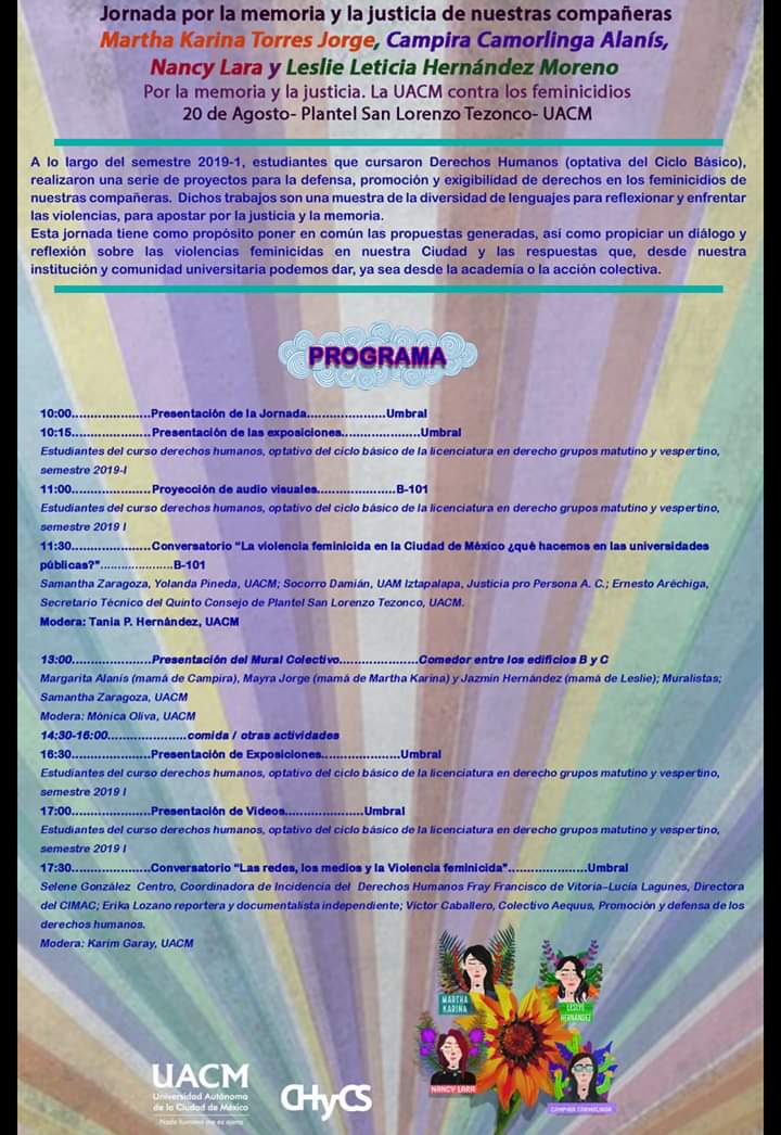 En UACM Tezonco “Jornada por la Memoria y la Justicia de Nuestras Compañeras”