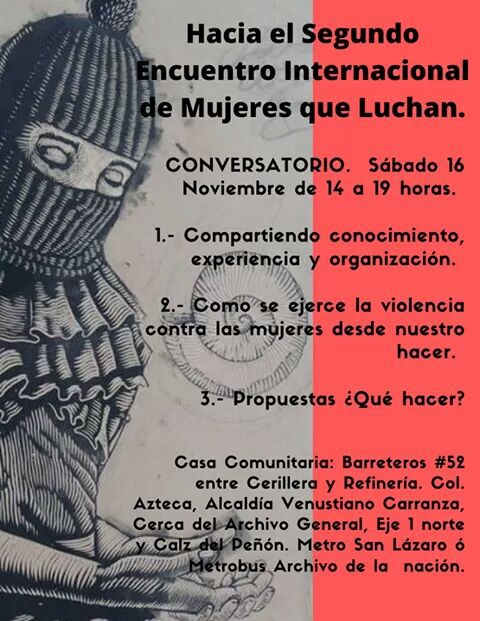 Hacia el Segundo Encuentro Internacional de Mujeres que Luchan, sáb 16 de nov.