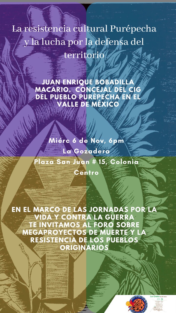 Un comentario en “La Resistencia Cultural Purépecha y la Lucha por la Defensa del Territorio, miér 6 Nov, 6pm. La Gozadera”