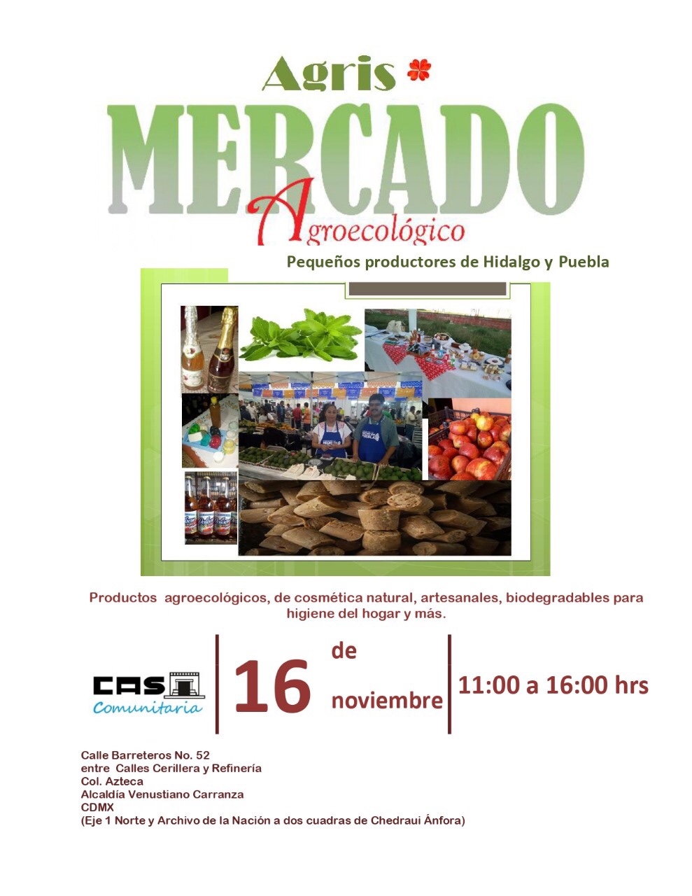 Mercado Agroecológico, Casa Comunitaria, sáb 16 de nov