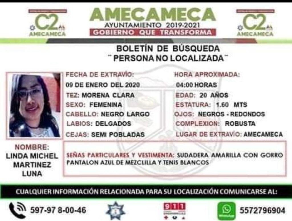 Linda Michel Martínez Luna desaparecida en Amecameca