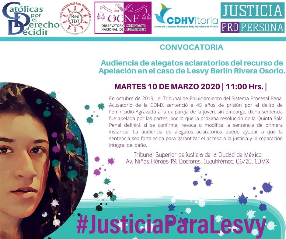 Buena noche Compañerxs, nos apoyan a compartir y ojalá puedan acompañarnos. Nos veremos mañana martes 10 de marzo afuera del TRIBUNAL SUPERIOR DE JUSTICIA CDMX* a partir de las 10:00 horas, estaremos bordando y exigiendo se juzgue con perspectiva de género, porque NO ESTÁMOS TODAS, PERO NO ESTÁMOS SOLAS, NOS VAN A VER JUNTAS!!!