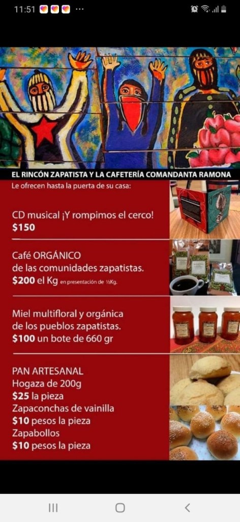 La Cafetería Comandanta Ramona y el Rincón Zapatista te ofrecen hasta la puerta de tu casa alimentos, CDs, etc