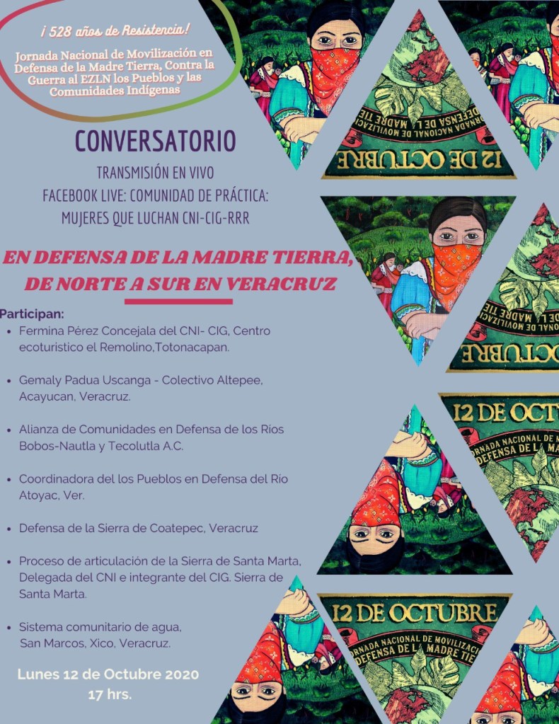 Conversatorio: En defensa de la madre tierra, de norte a sur en Veracruz, lunes 12 de oct, 17 hrs.