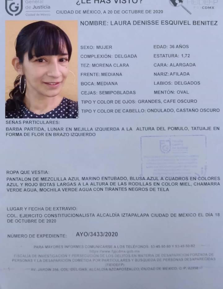 😞fue asaltada y golpeada, fue posteriormente al hospital del Issste de Zaragoza. Ingreso a las 8 de la mañana, alta ese mismo día a las 4 de la tarde. Sin embargo desde ese día, 18 de octubre no se sabe nada de ella.