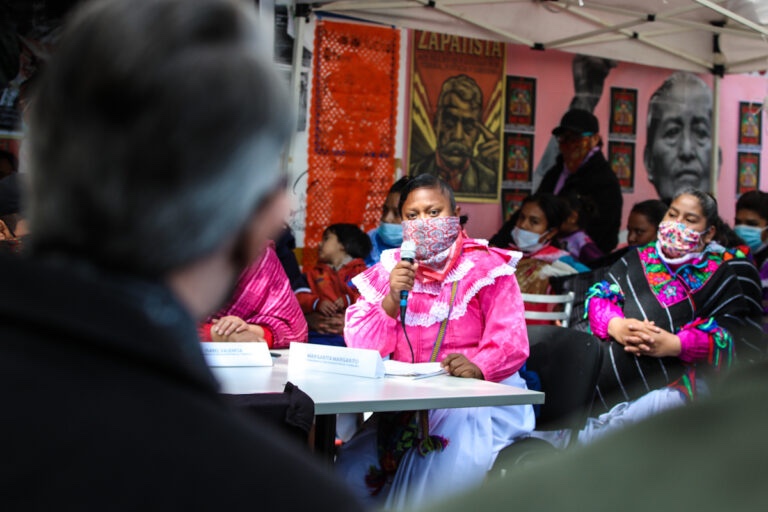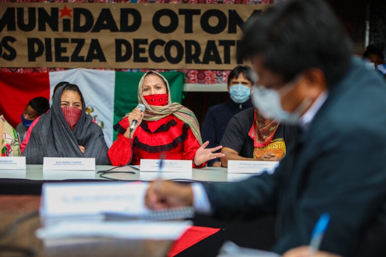 «Entonces decimos: ¿viviendas para quiénes, casas para quiénes? Para los que pagan, para los que gentrifican. No para nuestra comunidad. Nosotras como otomíes también tenemos derecho a vivir en la ciudad”.