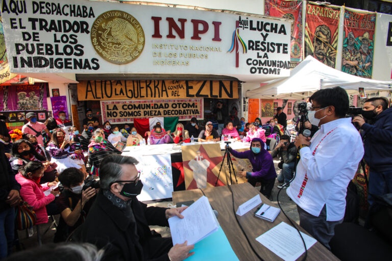 Adelfo Regino, titular del INPI, ofreció disculpas a la comunidad otomí residente en Ciudad de México por los agravios que han sufrido.