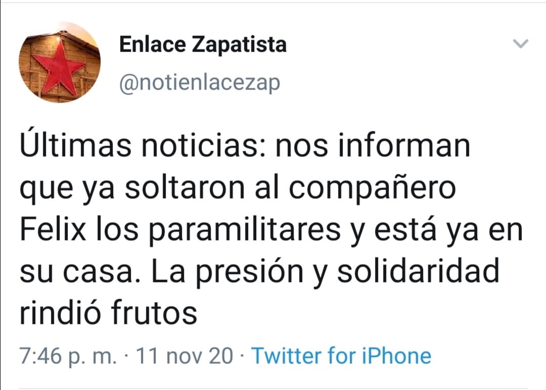 LOS ZAPATISTAS DENUNCIAN EL SECUESTRO DE UN BASE DE APOYO POR PARAMILITARES DE LA ORCAO