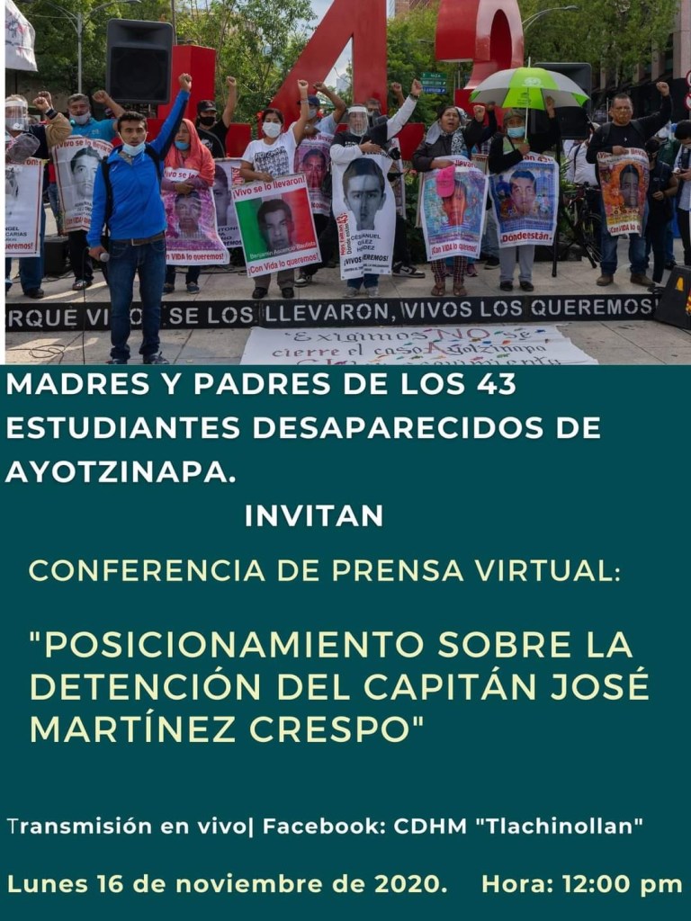 Posicionamiento sobre la detención del capitán José Martínez Crespo: Madres y Padres de los 43