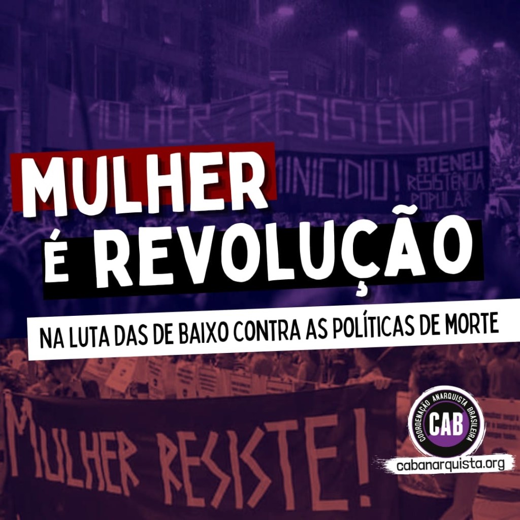É chegado mais um 8 de março. Embora o ano de 2020 tenha sido marcado por esforços desesperados para sobrevivermos, no qual muitas de nós tiveram suas vidas ceifadas –seja pela COVID-19, seja pelos feminicídios e violências do Estado, seja pelas guerras declaradas pelos de cima, seja pela fome –, nos encontramos novamente com os punhos cerrados, em alto e alertas. Aproveitamos a data, memória das lutas das mulheres, para, internacionalmente, reafirmarmos: vivas estamos, na resistência e na luta nos manteremos! Ao Estado, ao Capitalismo, ao Patriarcado e Racismo, gritamos que nenhum segundo de paz lhes será dado. Nós, mulheres anarquistas organizadas na CAB, inseridas nas fileiras das lutas sociais Brasil afora, ocupamos o espaço deste Opinião Anarquista de março para apontarmos alguns elementos de leitura da realidade social que temos vivenciado.