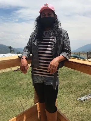 Ximena. 25 años. Mexicana de nacimiento. Cho´ol del norte de Chiapas. Habla su lengua natal, el cho´ol, y la castilla con fluidez. Sabe leer y escribir. Madre soltera de una niña de 6 años. Su madre la apoya cuidando a la niña. Ha sido coordinadora de jóvenes y actualmente es Comandanta en la dirección político-organizativa zapatista. Música que le gusta: cumbias, tropicales, románticas, revolucionarias, rock de los 80´s (así dijeron), electrónica y rancheras. Colores favoritos: morado, negro y rojo. Experiencia marítima: alguna vez en lancha. Se preparó durante 6 meses para ser delegada. Voluntaria para viajar en barco a Europa. Segunda al mando en la delegación marítima, después de Darío.