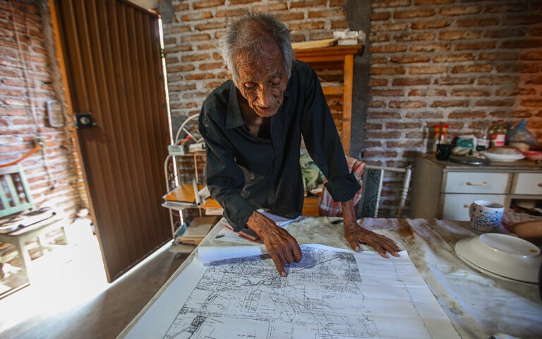 PÓTAM, SONORA.- Un mapa enorme se desenrolla sobre la mesa. Así se ve entre los ladrillos carcomidos de una estrecha habitación donde don Camilo Flores Jiménez explica la guerra de exterminio que vivió su familia y que ha vivido el pueblo Yaqui. Anda descalzo, pero para recibir a las visitas se pone unas botas cafés desgastadas.