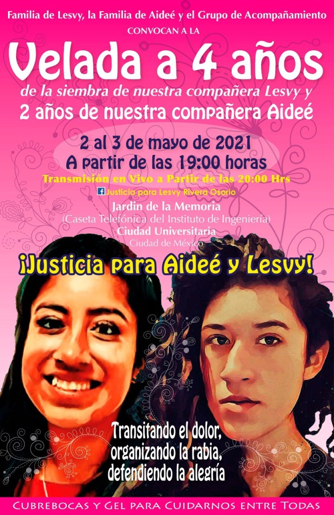 ¡Justicia para Aidée y Lesvy! Velada a 4 años, del 2 al 3 de mayo