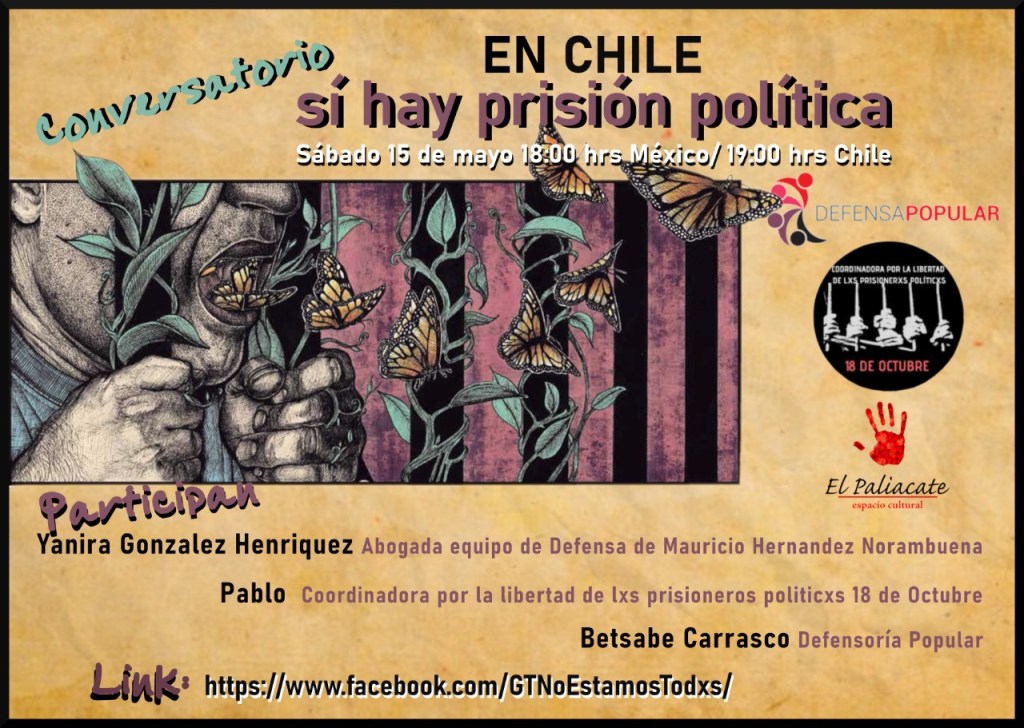 Conversatorio “En Chile sí hay Prisión política”, Sáb 15 de Mayo, 18 hrs CDMX, 19 hrs Chile