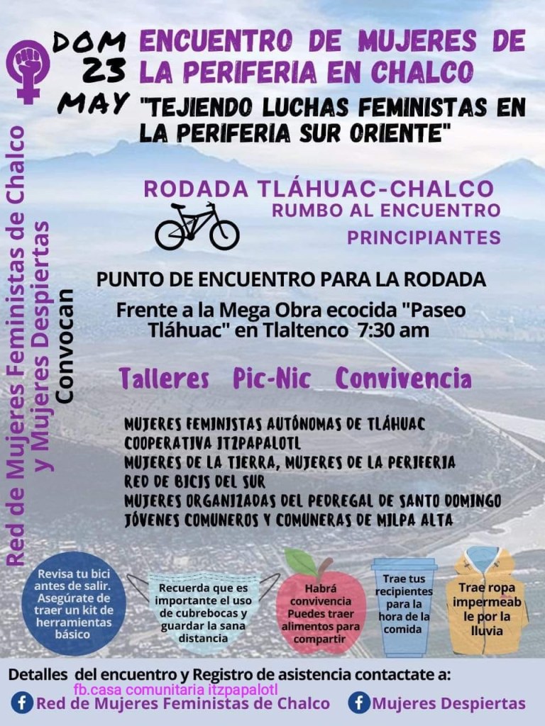 Quedan cordialmente invitadas a compartir con nosotras, red feminista de la periferia suroriente Tláhuac, Chalco, Milpa Alta y Xochimilco Santocho y más