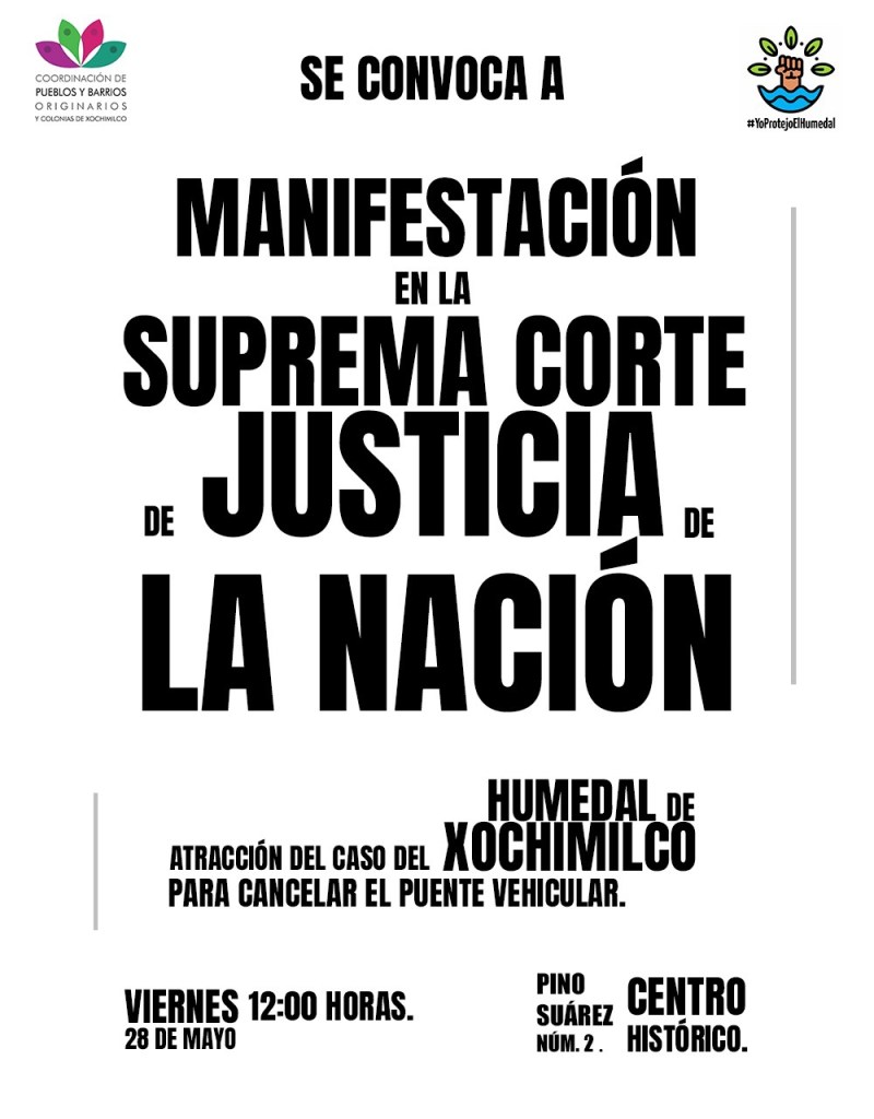 Manifestación en la SCJN por el Humedal de Xochimilco, viernes 28 de mato, 12hrs