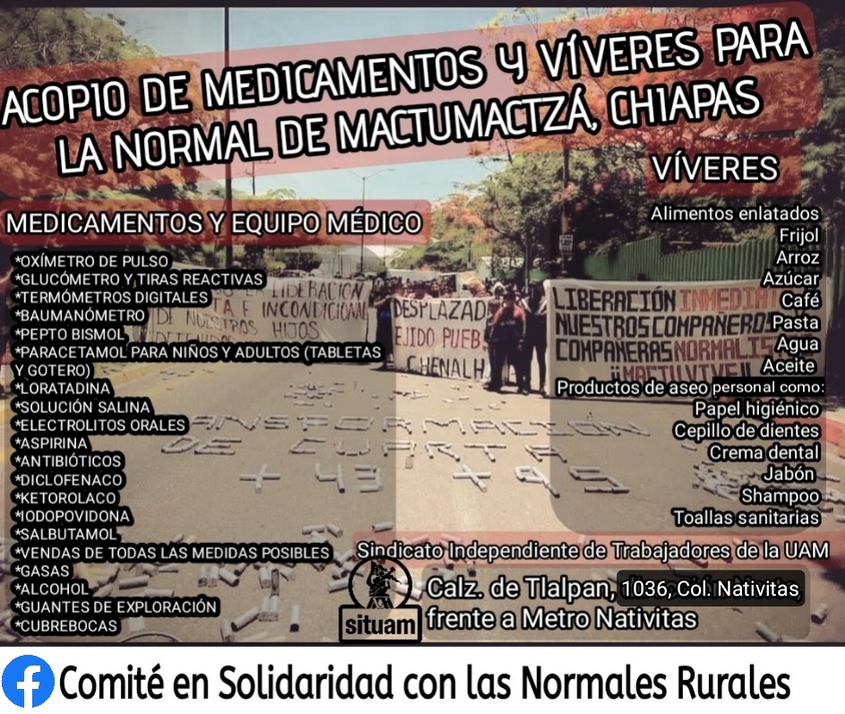 Acopio de medicamentos y víveres para la Normal de Mactumactzá, Chiapas