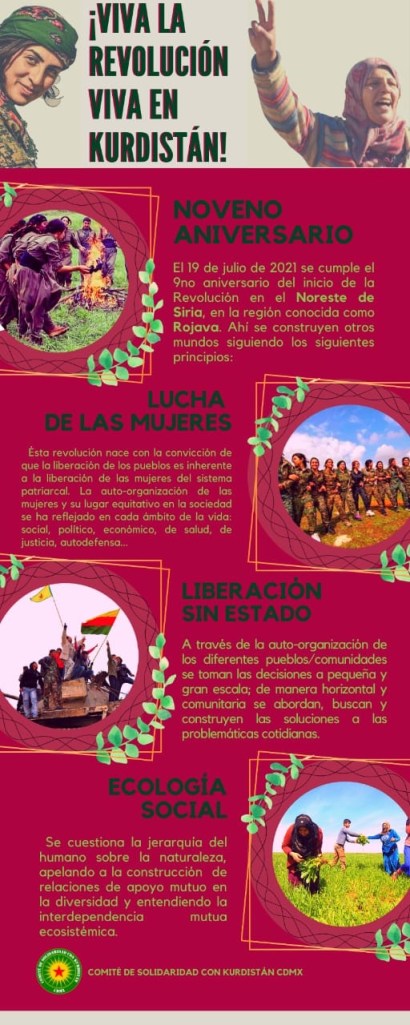 🌿En el marco del aniversario de la Revolución de Rojava, desde el comité en solidaridad con Kurdistán CDMX celebramos todos los frentes de lucha, incluyendo los no armados, que enlazan esperanzas y alternativas de vida al capitalismo y al patriarcado.