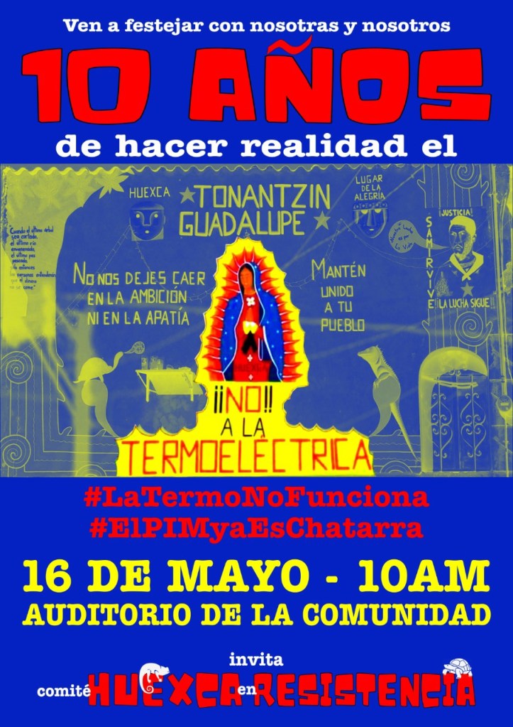 Ven a festejar con nosotras y nosotros ¡No a la termoeléctrica!, 16 de Mayo, 10am, Auditorio de Huesca