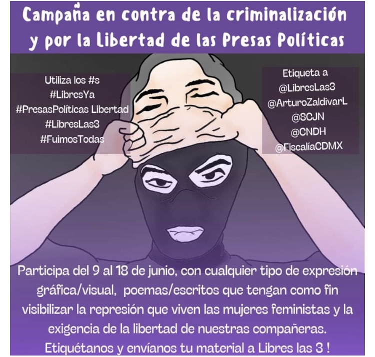 Hermanas les invitamos a enviar cualquier tipo de material audiovisual o escrito y a compartirlo en redes haciendo presión para exigir la libertad de nuestras tres compañeras.