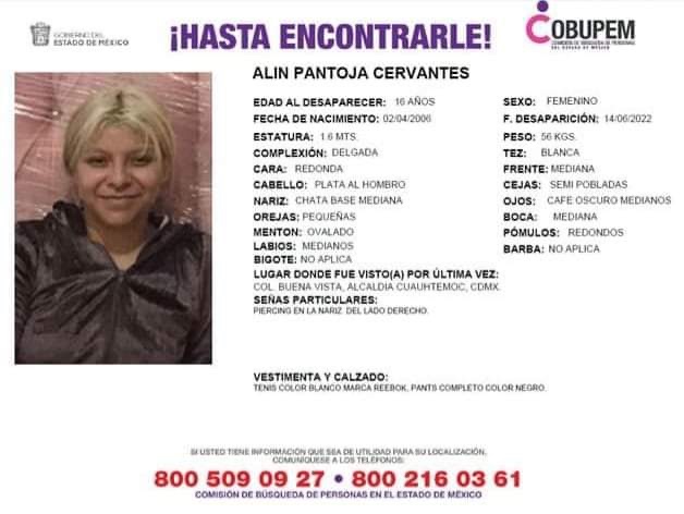 Alín Pantoja Cervantes, desaparecida el 14 de junio en la Col. Buenavista, alcaldía Cuauhtémoc