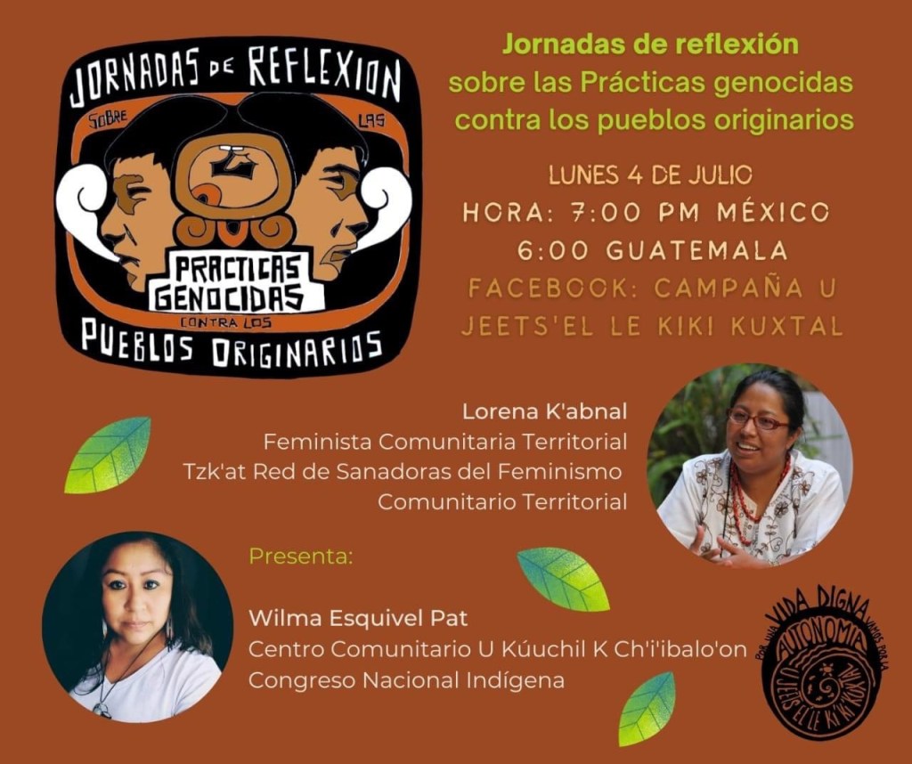 Nuestra querida hermana Lorena k’abnal nos comparte su fuerza espiritual y palabra, su hacer diario al cuidado y defensa de la vida, reflexionaremos sobre la sanación ante el Genocidio.