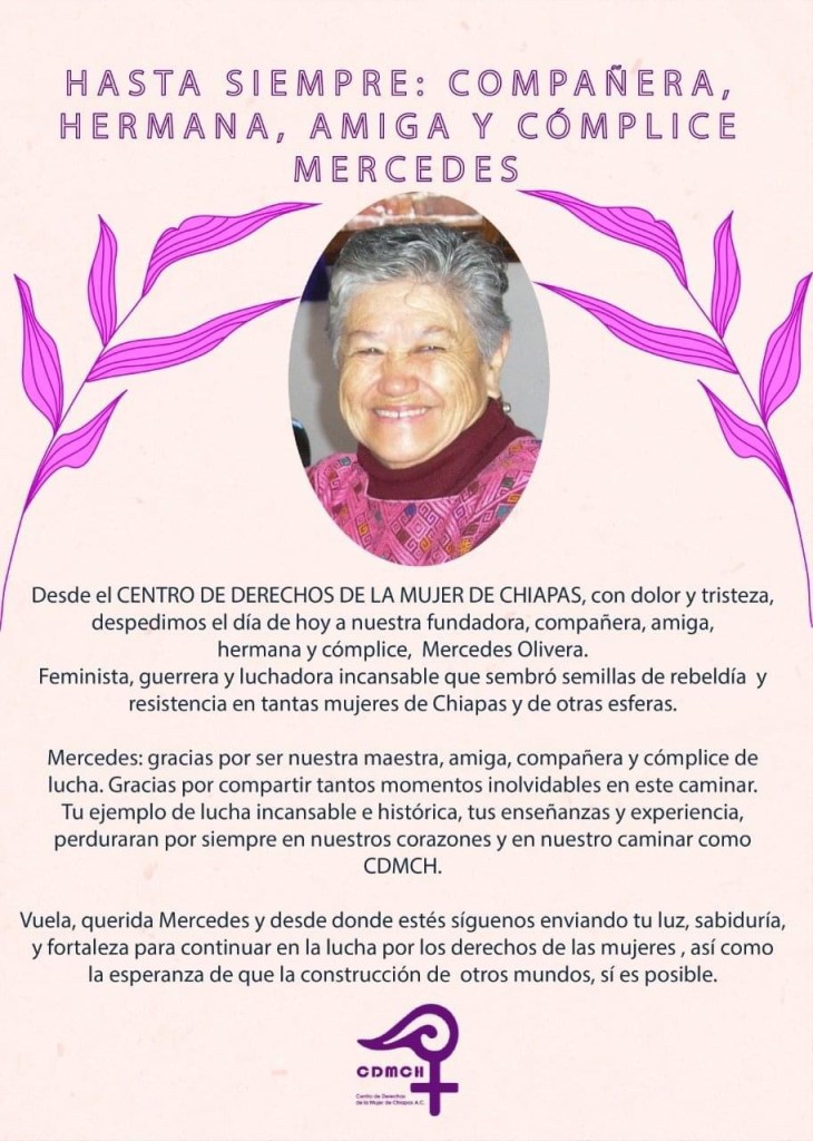Hasta siempre compañera, cómplice, hermana, amiga y maestra Mercedes Olivera