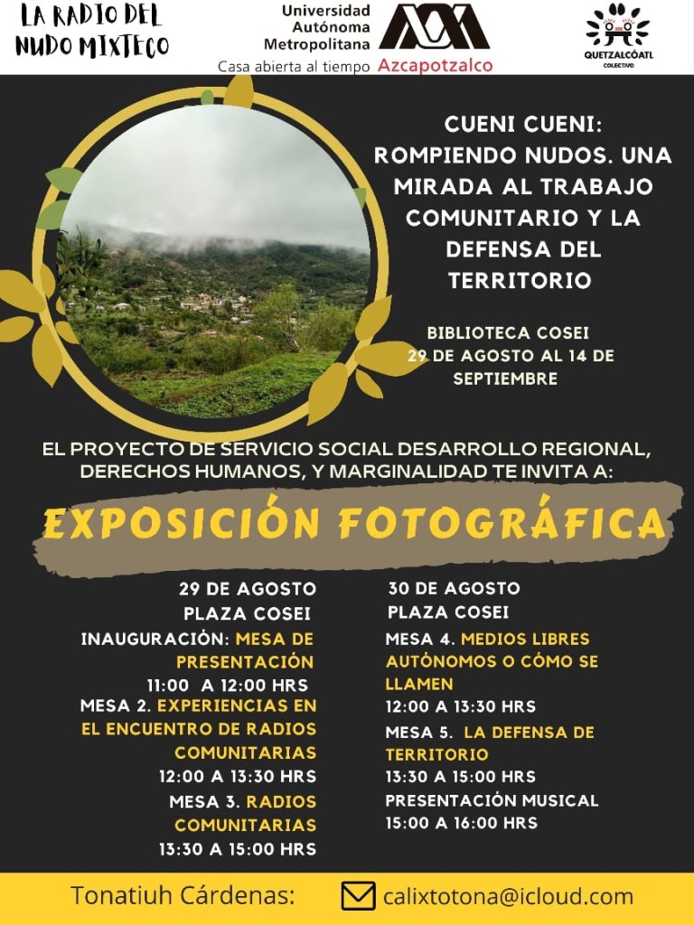 Rompiendo nudos. Una mirada al trabajo comunitario y la defensa del territorio. UAM-A. Agosto 29 al 14 de Sept.