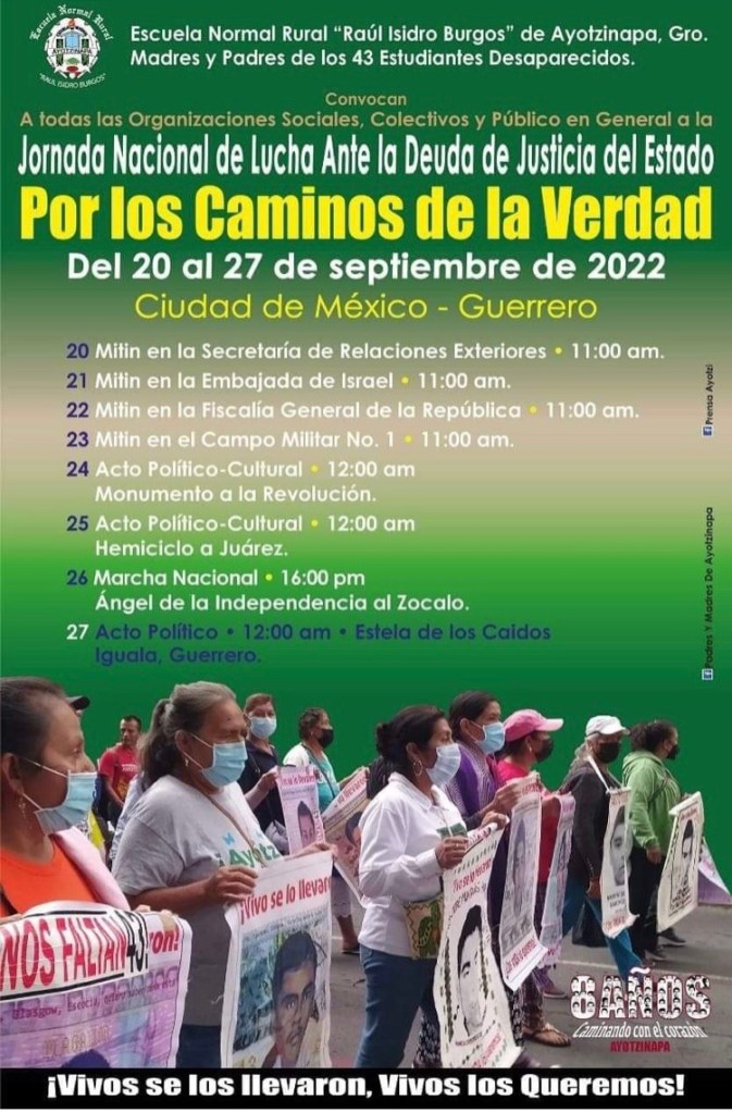 Por los caminos de la verdad, del 20 al 27 de septiembre de 2022. Madres y padres de los 43 estudiantes desaparecidos y la ENR de Ayotzinapa