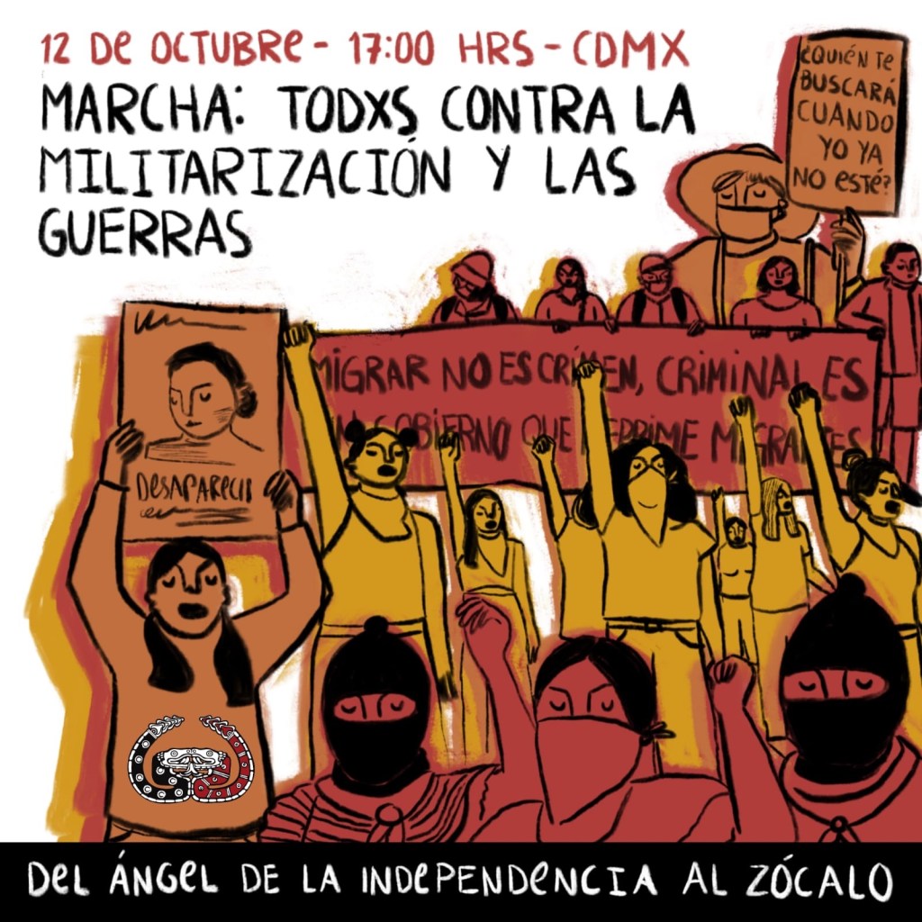 Marcha: Todxs contra la militarización y las Guerras, del Ángel al Zócalo, 12oct22, 5pm