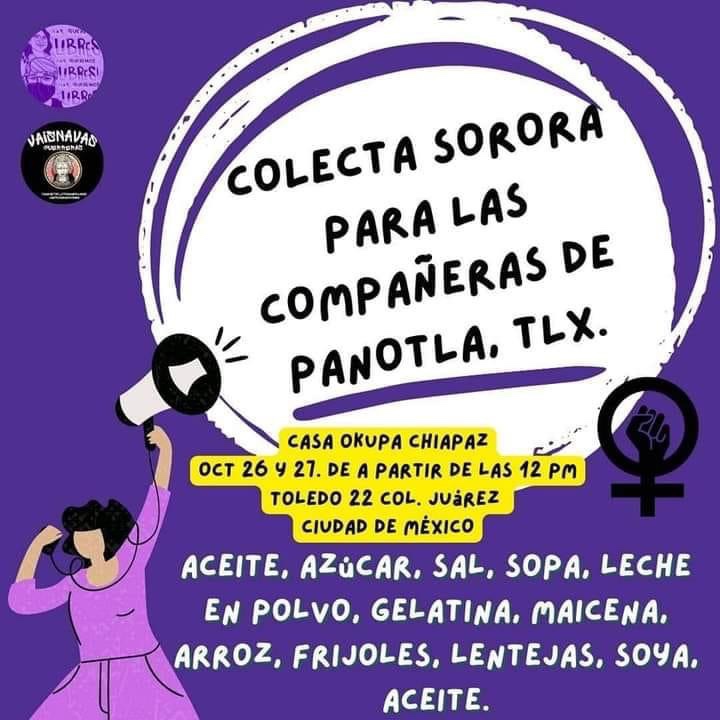 Desde la CDMX hacemos un llamado a colectivos y colectivas a solidarisarse en esta colecta para las compañeras.
