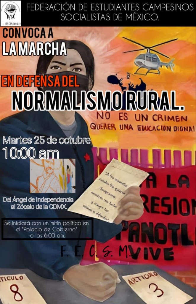 Marcha en defensa del normal ismo rural, martes 25 de oct, 10am, del Ángel al Zócalo