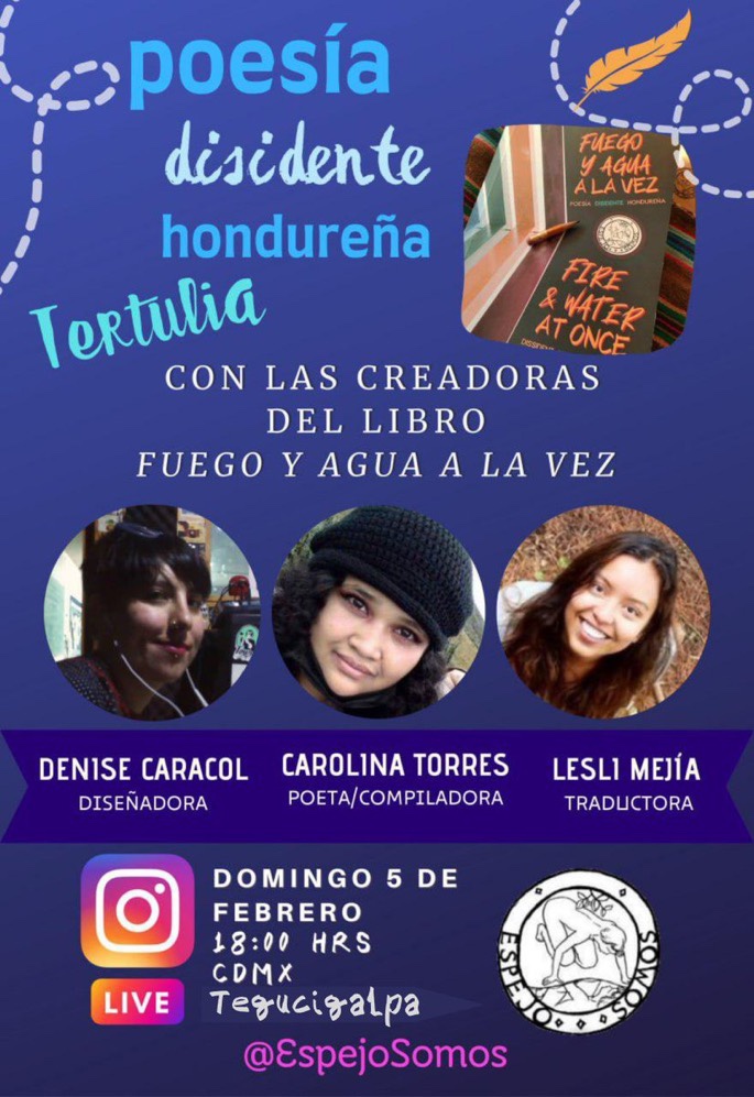 📖📍Este domingo nos vemos para una conversación con Carolina Torres, poeta y compiladora, Lesli Mejía, traductora de poesía y Denise Caracol, editora de Ediciones del Espejo Somos. pic.twitter.com/AOrdMBcoZz