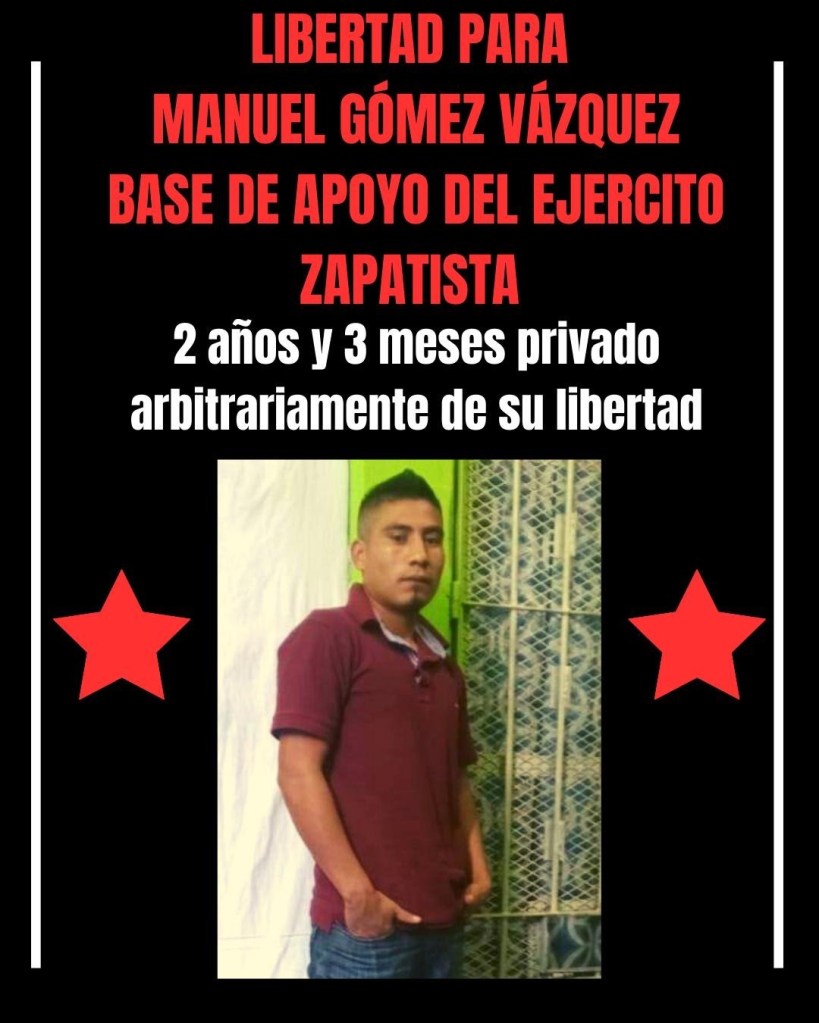 Como muchxs de nos ustedes hemos enterado por medio de nuestrxs compañerxs del Centro de Derechos Humanos Fray Bartolomé de Las Casas[1], o como nos gusta decirles el Frayba, sobre la privación arbitraria de la libertad de nuestro compañero Manuel Gómez Vázquez, quien es Base de Apoyo Zapatista (BAZ) , y desde hace 2 años y 3 meses fue privado arbitrariamente de su libertad en el Centro Estatal de Reinserción Social de Sentenciados número 16 de Ocosingo Chiapas. Cabe recordar que el compa Manuel, es maya-tseltal de 22 años y campesino, originario del Municipio Autónomo Rebelde Zapatista, Ricardo Flores Magón, Junta de Buen Gobierno el Pensamiento Rebelde, Caracol IX, Nuevo Jerusalén, municipio oficial de Ocosingo,Chiapas .