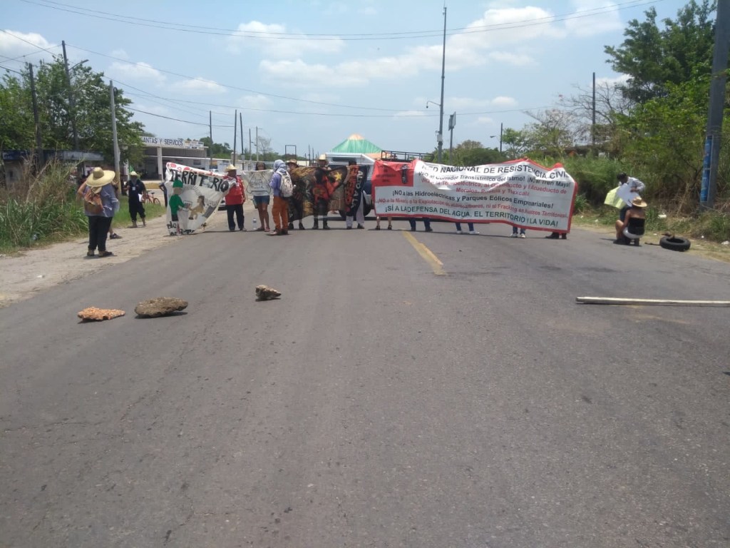 Bloqueo en Oteapan Veracruz en solidaridad con el campamento Tierra y libertad en Mogoñe Viejo Guichicovi que fueron desalojados el día de hoy 28 de abril. Este campamento detenía las obras del tren trans Istmico. Máxima difusión y solidaridad para el campamento Tierra y libertad !!!