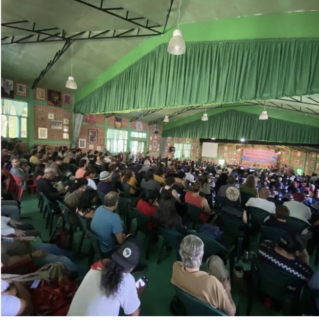 En la inauguración del encuentro internacional se realizó un recuento de lo que fue la travesía de la caravana, así también se contó con la participación de oradores nacionales e internacionales que compartieron su forma de resistir y organizarse contra la explotación, el despojo y la represión de gobiernos y empresas que los quieren despojar de su tierra y territorio.