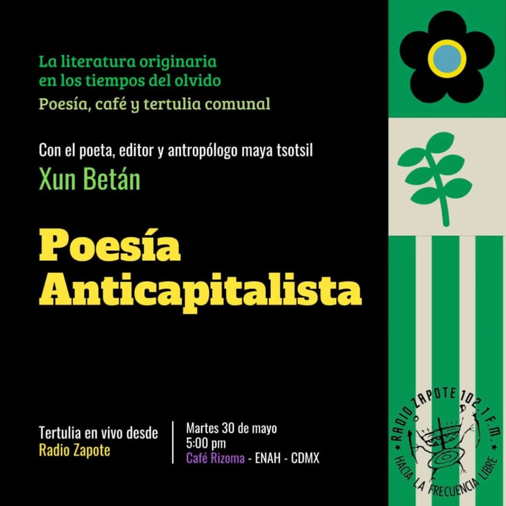 Están todes invitades a la Tertulia de este martes 30 de mayo con el poeta maya tsotsil Xun Betán.