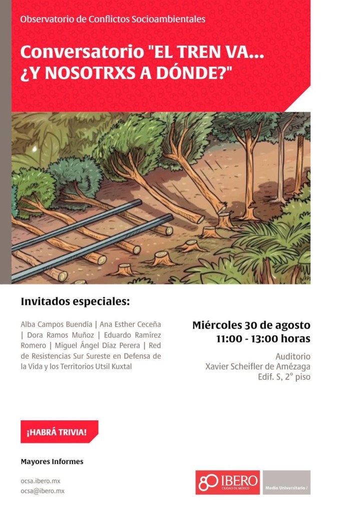 Conversatorio “El tren maya va… ¿y nosotr xk a dónde? Ibero CDMX, miérc 30 Ags, 11 a 13 hrs.