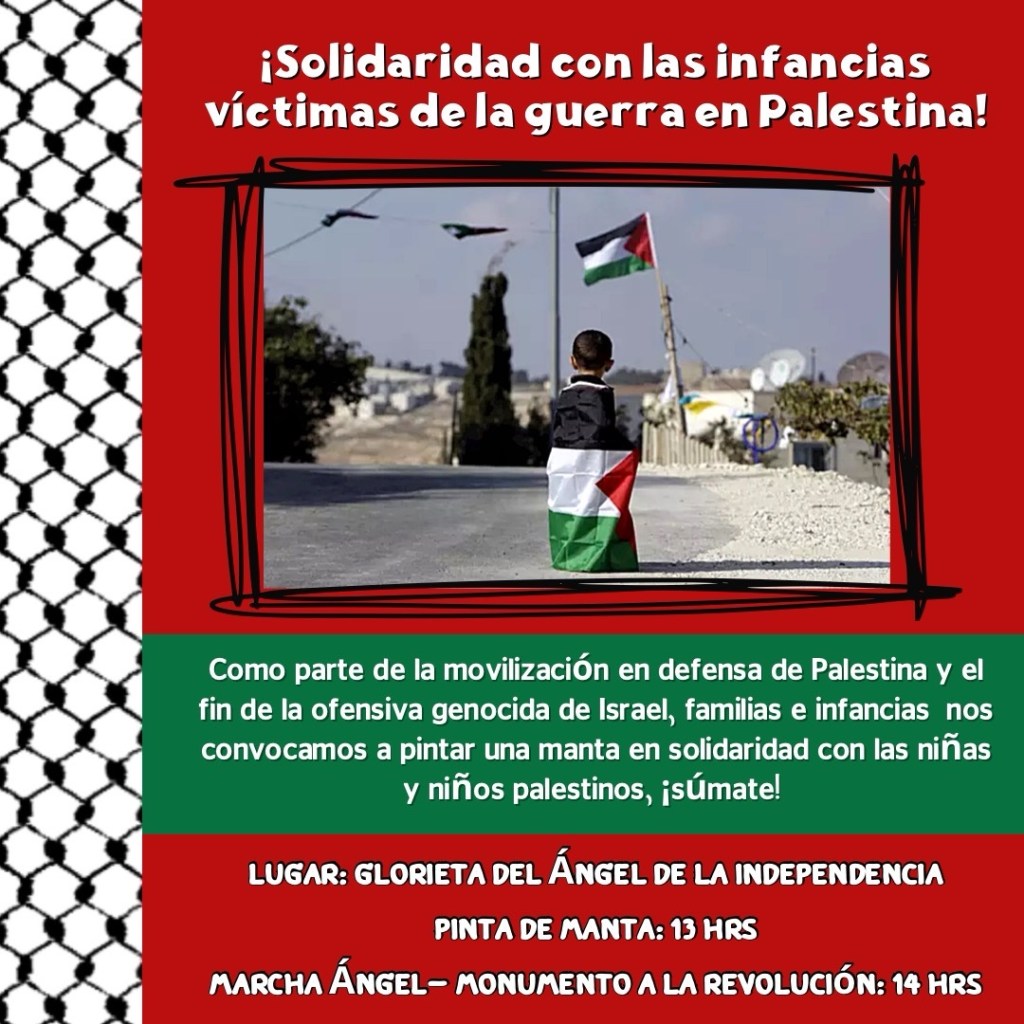 ¡Solidaridad con las infancias víctimas de la guerra en Palestina! Pinta de manta, 13 hrs, Glorieta Ángel de la Independencia antes de la marcha