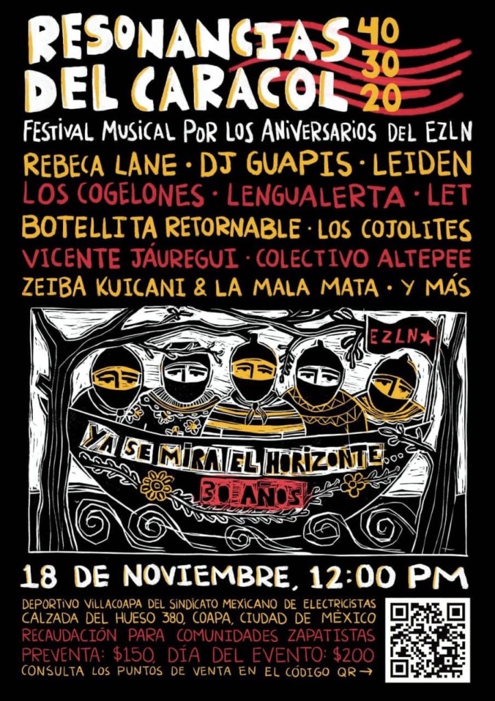 Vale cada boleto $150 (y $200 el día del evento)— Todo va para las comunidades maya zapatistas.