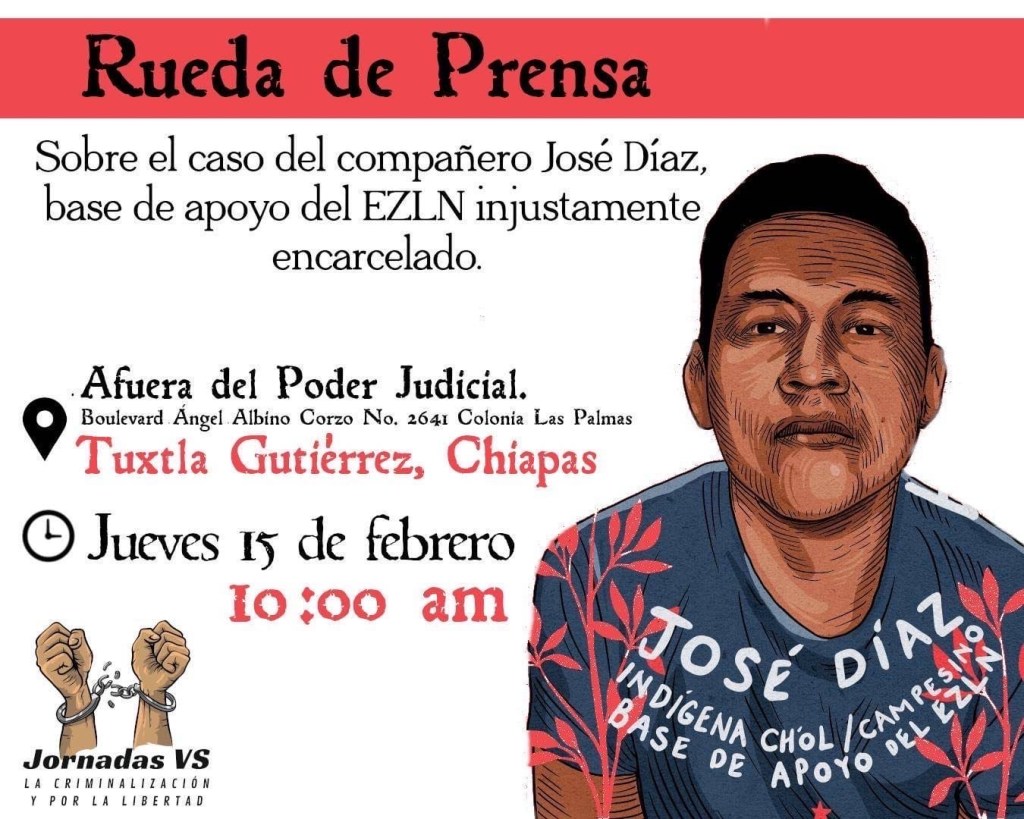 Rueda de prensa por la libertad de José Díaz, Base de Apoyo del #EZLN; su situación carcelaria, cambio de medida cautelar y violaciones al debido proceso.