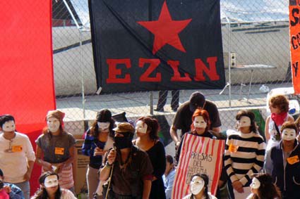 Entonces llega un momento en que el proceso éste, de rebeldía organizada, se desprende de lo que es el aparato político-militar del EZLN y adquiere este modo que tanta simpatía ha despertado en el resto del mundo: el modo de las mujeres zapatistas. Que tiene que ver con su modo de castellanizar —ya ven que hablamos muy otro—, o sea hacemos el español, le damos una vuelta muy otro a la hora que se mezcla con la lengua indígena. Empieza a surgir, a correr en forma paralela, y en este caso surge o se marcan más la figura de Ramona y de Susana.