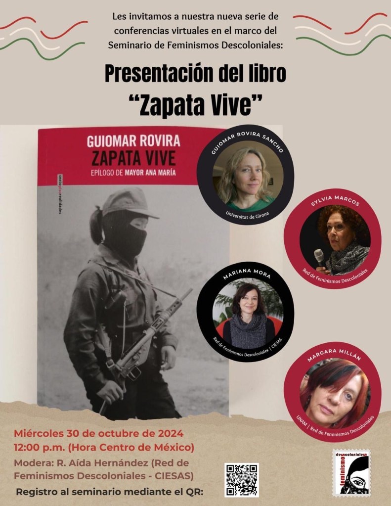 Presentación del libro “Zapata Vive” en el marco del Seminario de Feminismos Descoloniales. Miérc 30 de oct, 12pm. Registró a través del QR