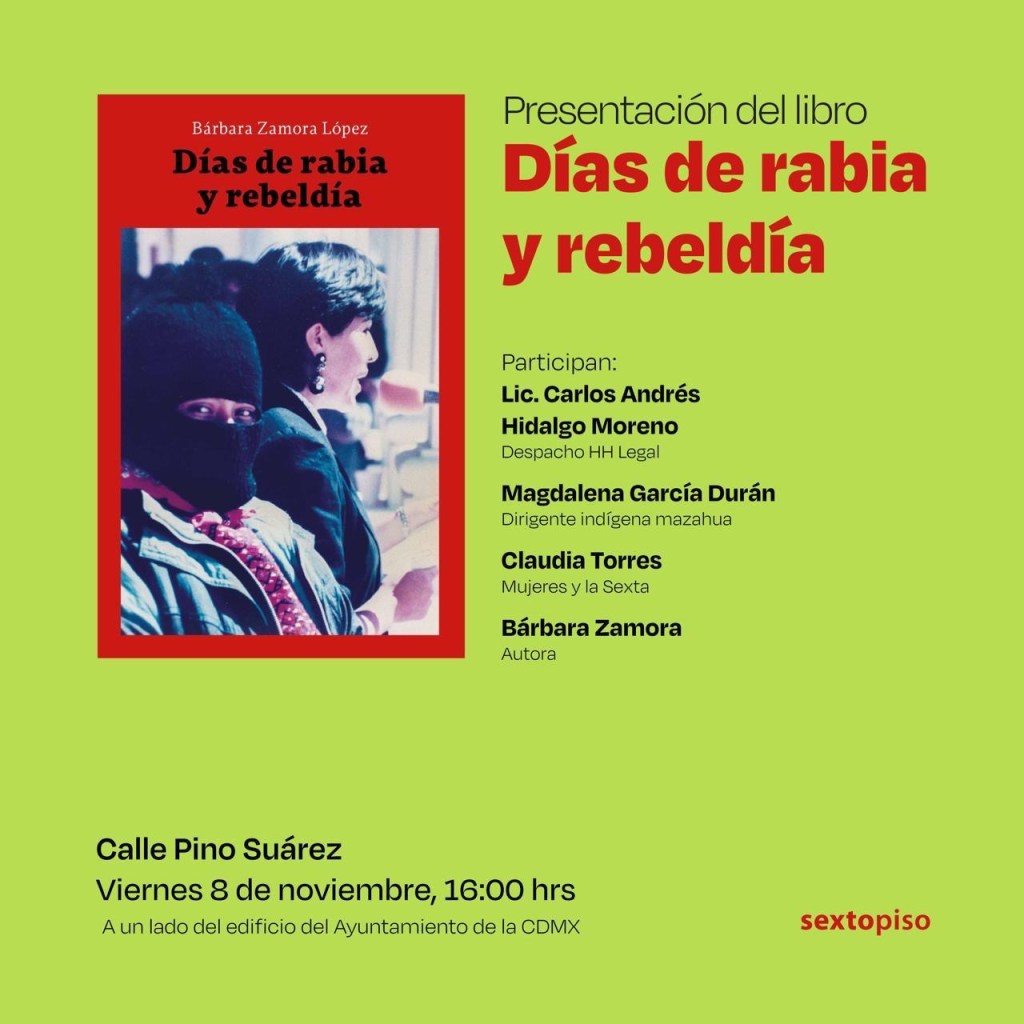 Días de Rabia y Rebeldía, presentación del libro de Bárbara Zamora. viernes 8 de noviembre, 4pm. Pino Suárez esq Ayuntamiento CDMX