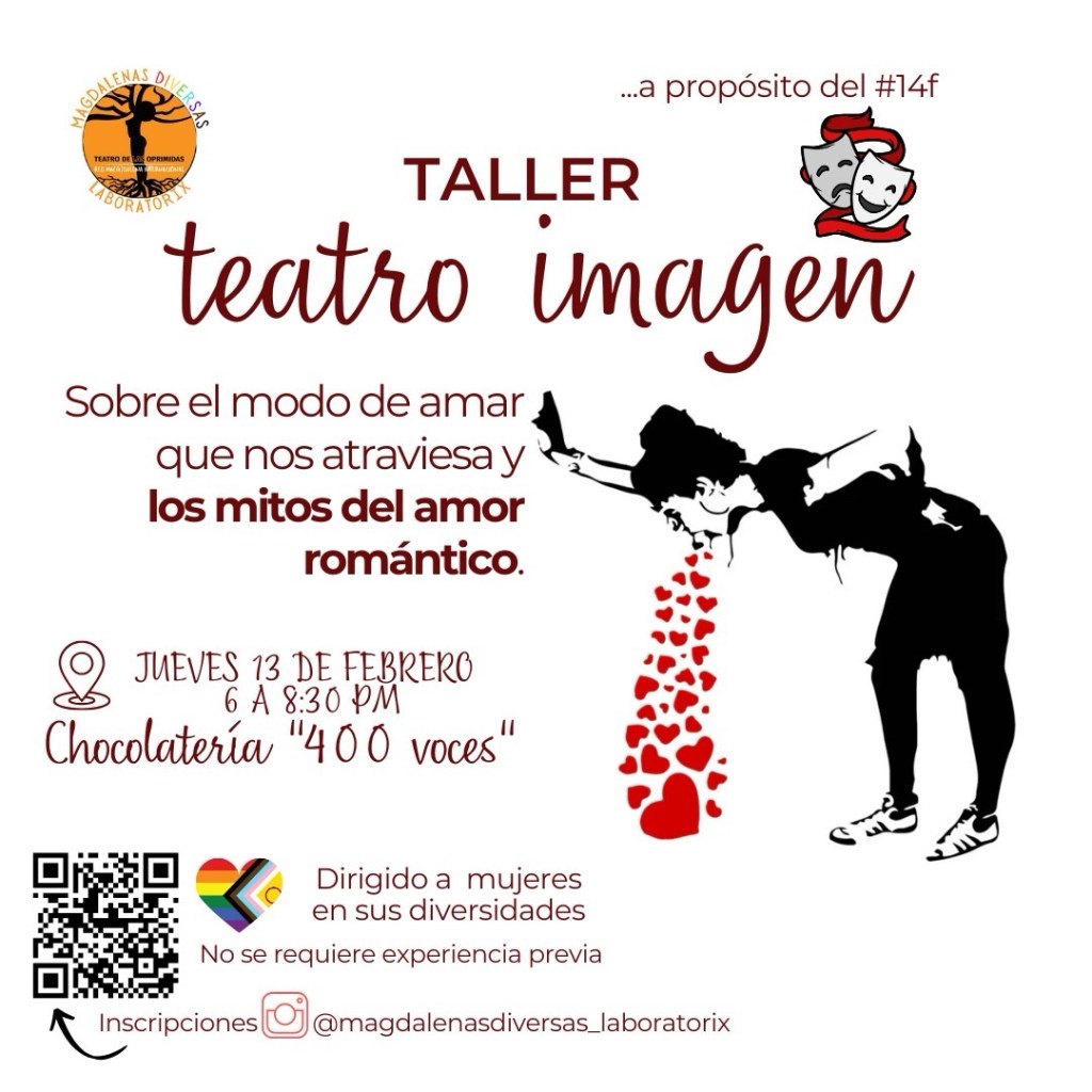 Taller sobre el modo de amar que nos atraviesa y los mitos del amor romántico, Feb 13, 6 a 8:30pm. 400 voces. Inscripciones abiertas.